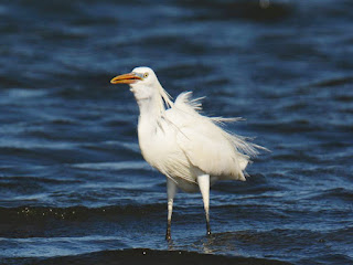 眼先藍色,後頭、背及前頸下部有一大撮飾羽