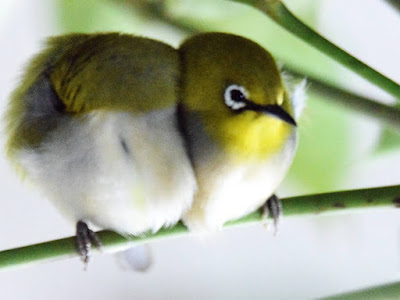 錄-陽台植栽上的綠繡眼,天未暗就飛回停留在枝幹上準備過夜,恩愛的狀況令為人的我們羨慕,現光線足,就以自動對焦方式拍下牠們依偎在一起的影像。圖文/川夏